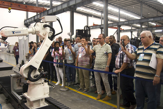 古巴專家團參觀“3C產(chǎn)業(yè)手機金屬外殼加工的自動化生產(chǎn)線”及“數(shù)字化工廠”