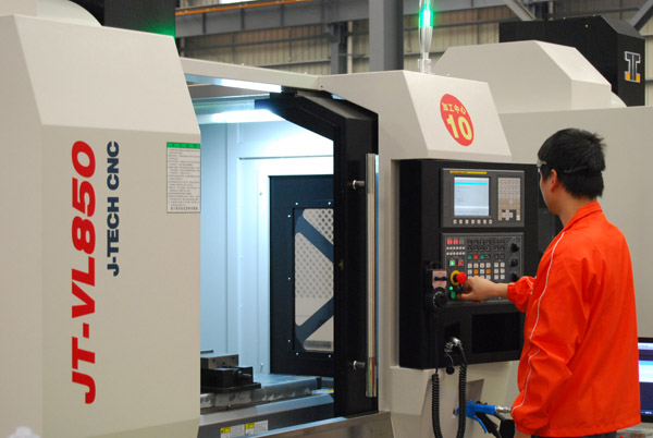 其中嘉泰數(shù)控高速立式加工中心JT-VL850擁有48m/min快速定位,軸最大加速度1.0G,有效縮短加工定位時間,提高加工效率;特別是配置了10000rpm的直結(jié)式主軸,確保高速切削的穩(wěn)定性且無皮帶之動力損耗;最高剛性攻絲轉(zhuǎn)速:5000rpm,剛性攻絲倍速回退,有效提高剛性攻絲速度。該加工中心廣泛運用于汽車零部件、摩托車/電動車配件等產(chǎn)品的有色金屬加工需要,以及模具(如塑料模具、橡膠模具、金屬模具等)、五金加工、工程機(jī)械、化工機(jī)械及配件的加工、鋁及鋁型材加工、適配器、油泵、攝影器材、其他機(jī)械行業(yè)零部件的加工主機(jī)等(如切割機(jī)、造紙機(jī)、紡織機(jī)、CNC等),確保高速、高精度、高穩(wěn)定性的加工要求。